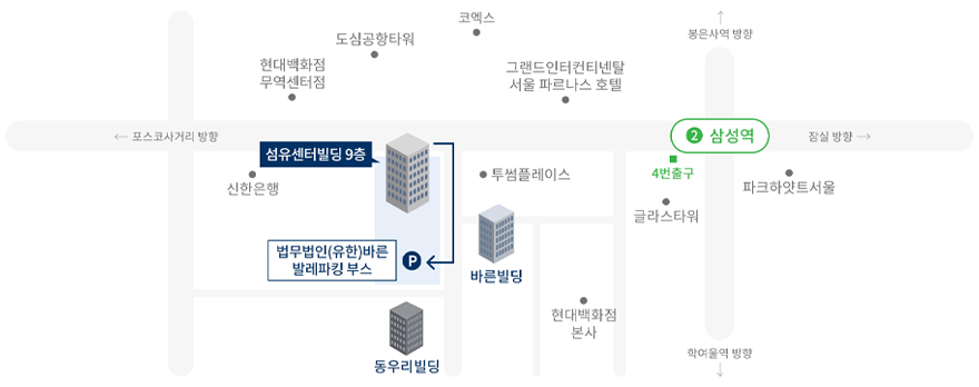 2호선 삼성역 4번 출구 200m 직진 (도보 약 3분)